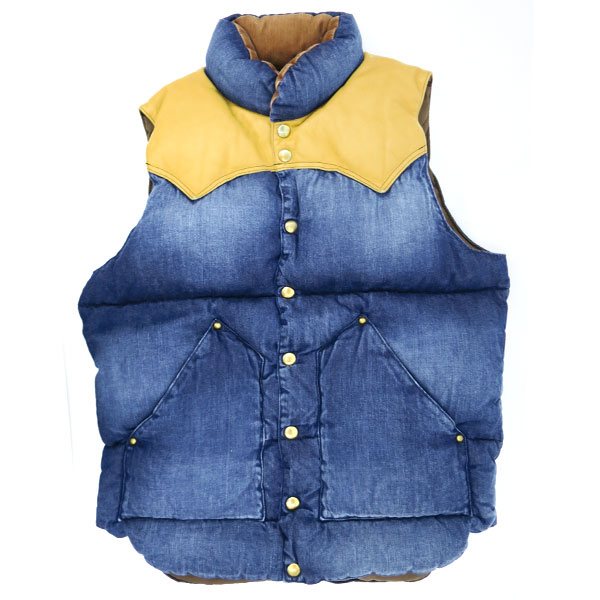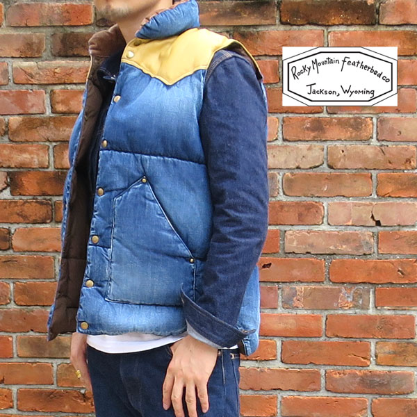 ブランド名 品名 ■RANCH DOWN VEST / デニム生地【メンズ】■※ボア無しです※ ロッキーマウンテンフェザーベッドの【HERITAGE】ラインの「顔」とも言える代表的なモデル。