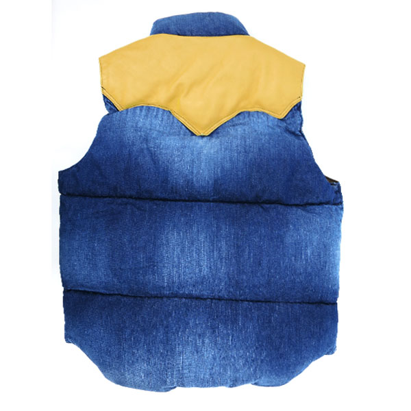 【セール SALE☆】デニムダウンベスト RANCH DOWN VEST / DENIM生地【神戸正規店】ボア無 Rocky Mountain Featherbed ロッキーマウンテンフェザーベッド ダウンベスト【 INDIGO ONE WASH / インディゴ (ワンウォッシュ) 】メンズ ダウンベスト MADE IN JAPAN